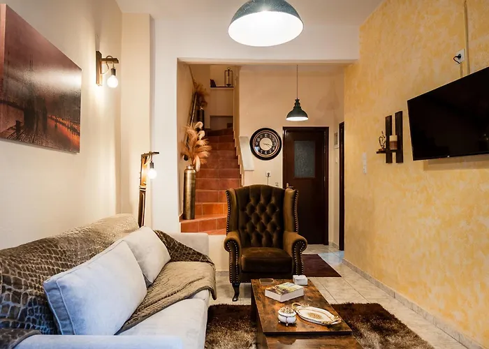 La villa è dotata di un bollitore elettrico, un frigo e un tostapane per il self-catering in una zona pranzo all'aperto. La Old Town Rhapsody, Cosy 2-Floor Home With Rooftop Bathtub, Bbq & Lounge Under Sun Umbrellas si trova in prossimità del ristorante To Kafeneio sti Nomarchia, dove gli ospiti possono gustare vari pasti. A 350 metri, la stazione degli autobus Igoumenou Gavril 2 offre opzioni di trasporto nelle vicinanze.